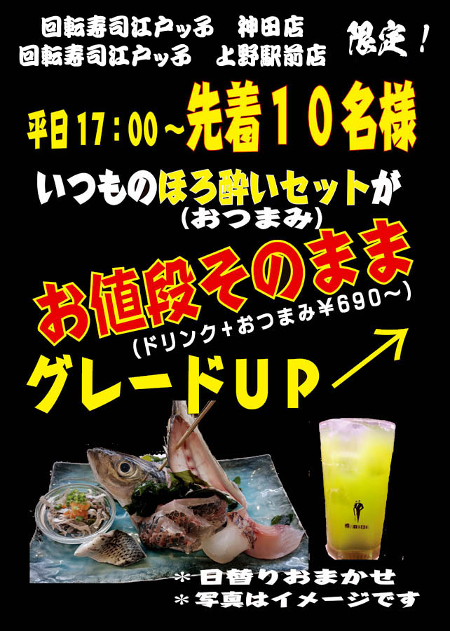 ▼平日17時直後はさらにオトク!? おつまみグレードUP!!▼